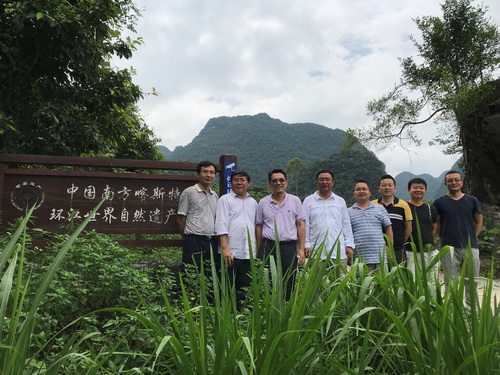 邬建国和白永飞首先考察了环江站古周石漠化治理与生态恢复重建示范区,亚热带生态所党委书记兼环江站站长王克林研究员详细介绍了环江站长期以来在古周开展的异地扶贫搬迁、石漠化治理、生态定位监测、生态产业扶贫等方面的研究与示范工作。在广西木论国家级自然保护区,专家们现场考察了喀斯特常绿落叶阔叶混交林25ha大型森林动态监测样地和峰丛洼地多样性景观。在客人参观环江站综合观测试验场期间,亚热带生态所副所长兼环江站副站长陈洪松研究员介绍了喀斯特地上地下三维水土过程监测、典型喀斯特生态系统模拟冠层氮沉降、多尺度水文过程对全球变化响应等科研样地平台的总体情况,着重介绍了试验样地设置所针对的关键科学问题,主要工作开展等。