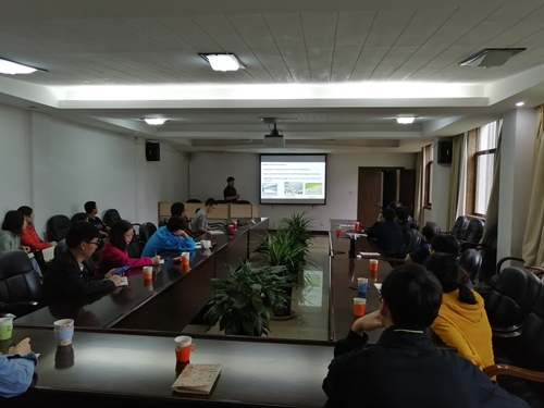 肖向明作了题为Remote sensing of surface water, wetlands and paddy rice croplands的学术报告,系统介绍了他和团队在水体遥感研究领域多年的成果。报告指出遥感是艺术和科学的结合,并对遥感原理、遥感数据源及其获取、数据挖掘和算法分析等进行了生动地介绍,最后,就遥感在地表水体、湿地、稻田和禽流感风险遥感监测等方面的应用进行了案例分析。双方就喀斯特高异质性生态参量遥感反演方法、人工林与天然林遥感专题制图、研究人员访学交流等方面达成合作意向。