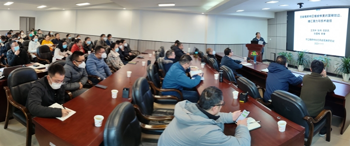 站长王克林首先总结了环江站2022年在基本运行、科研项目承担、研究成果产出、人才培养与成长等方面的情况,肯定了全站师生的贡献与成绩的同时,围绕环江站当年新部署立项的重大科研项目,提出了科研思路与2023年度研究工作的重点,并介绍了“西南喀斯特区植被恢复的固碳效应、增汇潜力与技术途径”研究进展。会上,研究组组长、科研骨干及青年研究人员分别就喀斯特生态系统的区域水文、土壤碳-氮循环与微生物作用、植被的生态与水文环境效应、人类扰动下的生态格局演变等多个喀斯特生态过程与服务专题开展学术交流与讨论。交流会促进了科研人员们各自研究方案的完善以及新思路的启发,助推环江站后续科研工作的开展。