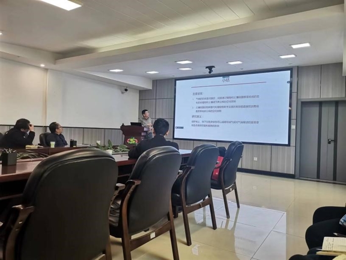 会上,井新作了题为“生物同质化与生态系统多功能性”的学术报告。报告内容主要包括全球尺度地上/地下生物同质化与养分库的空间周转、青藏高寒草地地上/地下生物同质化与养分库空间周转、极端生态系统土壤微生物的生物同质化与生态系统功能三方面的研究进展。井新认为植物、土壤微生物的生物同质化对多功能性影响的相对重要性具有尺度依赖性,未来研究仍需要进一步解析物种增加、物种丧失两个过程导致的生物同质化对不同时空尺度生态系统多功能性的影响机制。针对学术报告内容,井新与参会人员展开了热烈的讨论。