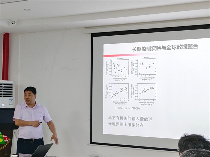 会上,周旭辉作题为“亚热带森林土壤有机碳累积及其响应极端干旱的机制”的学术报告。他介绍了亚热带森林在全球碳汇中的重要地位,阐述了亚热带森林次生演替中土壤碳累积以及极端干旱对亚热带森林土壤碳输入与碳输出的影响。报告内容丰富,见解独到,为参会人员提供了宝贵的学术启示和思考。