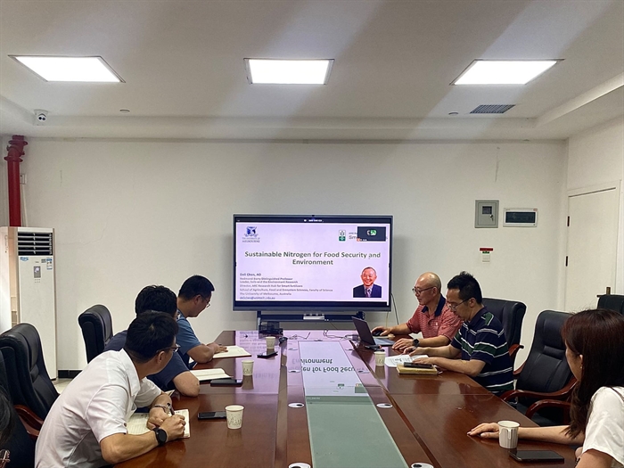 会上,DeliChen作题为“Sustainable Nitrogen of Food security and Environment”的学术报告,其介绍了农田氮肥利用效率低和大量N2O和NH3排放造成的负面环境效应,高效氮肥施用降低农田N2O和NH3排放、褐煤降低畜禽粪便中NH3排放的潜力和机理,并为如何实现农田氮素可持续性管理提出了建议。同时,就新型高效氮肥研发、氮素气体排放检测的尖端设备和AI混合机器学习模型等方面做了相关介绍。会上,研究所科研人员、研究生等与DeliChen进行了交流讨论。