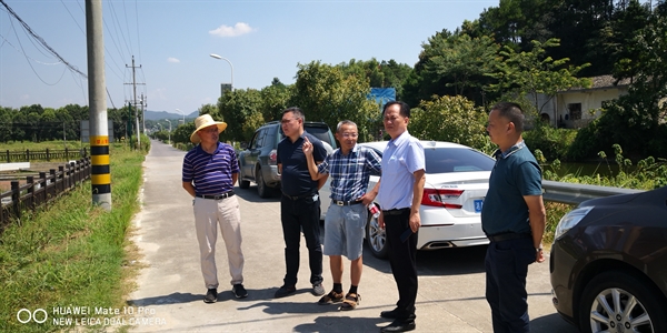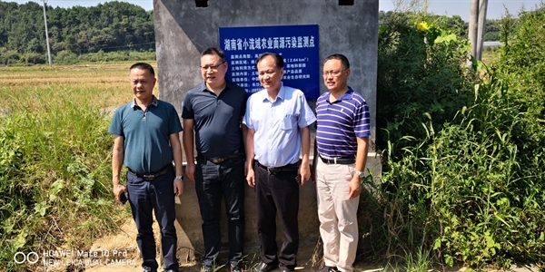 李君略(右二)、贺斌(右三)等考察小流域面源污染监测点