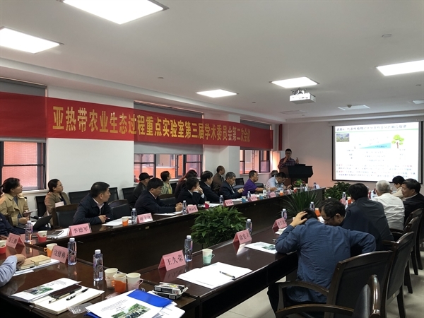 10月10日,中国科学院亚热带农业生态过程重点实验室第三届学术委员会第二次会议在中国科学院亚热带农业生态研究所召开。会议由中国科学院院士、重点实验室学术委员会主任傅伯杰和亚热带生态所党委书记王克林研究员主持,中国科学院院士邵明安、中国工程院院士印遇龙等9位学术委员和特邀专家以及重点实验室部分骨干成员与研究生参加了会议。