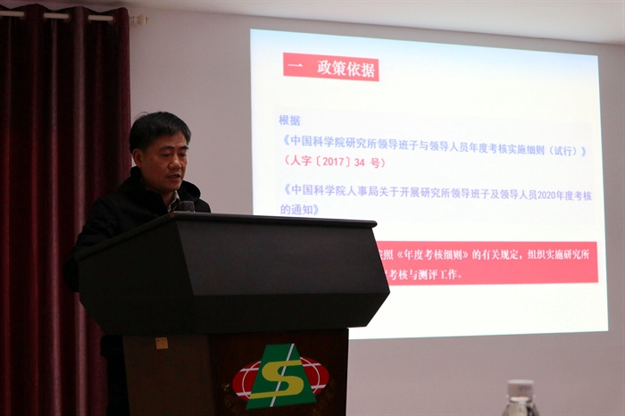 所长谭支良代表所领导班子作了2020年度履职情况报告。他从研究所全面加强党对科技工作领导、项目承担与实施情况、围绕“三重大”科技成果产出、人事人才情况、国际合作与院地合作、技术条件平台与园区建设的完善等六个方面回顾和总结了过去一年所取得的成绩,存在的问题和努力方向。他还传达了院年度工作会议精神。