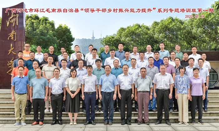 7月18日,广西环江毛南族自治县(以下简称环江县)“领导干部乡村振兴能力提升”专题培训班(第1期)在湖南大学开班,中国科学院亚热带农业生态研究所党委书记王克林、环江县县委书记陈斌出席开班仪式并讲话。亚热带生态所驻环江县定点帮扶工作队队长曾馥平、环江县科技副县长(挂职)何寻阳、湖南大学继续教育学院院长徐少华出席,来自环江县相关职能部门负责人、乡镇领导及技术干部共60人参加。
