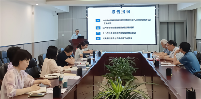围绕《中国共产党章程》《习近平新时代中国特色社会主义思想专题摘编》《习近平著作选读》《论党的自我革命》等书目中“推进经济高质量发展”“全面从严治党”相关内容,所长谭支良作《坚定信心 抢抓机遇,深入推进研究所高质量发展》专题党课,党委副书记、纪委书记文再坤作《学思想 强党性,加强党风廉政和反腐倡廉建设》专题党课。