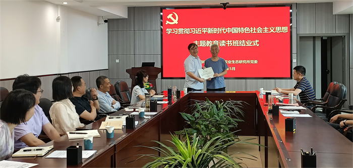 亚热带生态所开展了为期一周的主题教育读书班,采取集中学习、个人自学、专题党课、交流研讨、实地调研等多种形式,进一步深化了对习近平新时代中国特色社会主义思想的理解和认识,切实提高理论学习的针对性和实效性。 党委书记王克林为读书班成员颁发了结业证书。