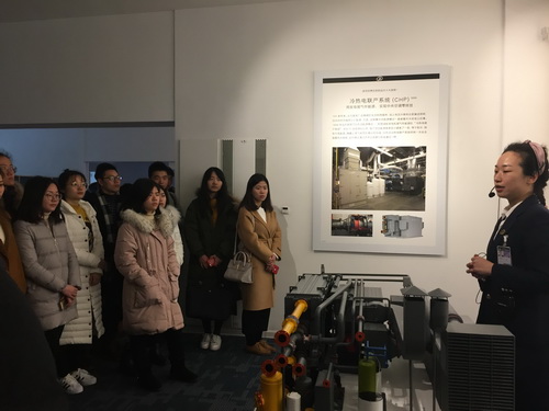 2月2日,研究生们来到位于长沙县的远大城,首先在集团展厅观看了远大的宣传纪录片,听取工作人员对远大的基本情况作了简要的介绍。接着,参观队伍在工作人员的热心讲解和陪同下实地体验了远大总部办公楼、全球用户联网监控中心。在远大集团全球网络监控中心,同学们了解到,仅仅在远大总部,工程师就可以通过网络切换到世界每台远大设备的运行状态及数据,能24小时自动对机组运行数据、设置参数等分析,准确判断参数设置是否合理,预知故障隐患,确保每台机组运行状况达到专家级标准。