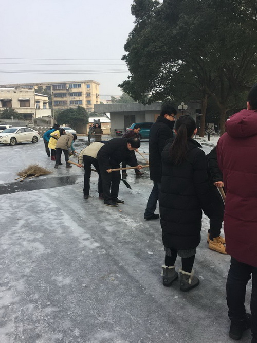 连日的冰冻雨雪天气,中国科学院亚热带农业生态所园区一片银装素裹,但道路也出现严重结冰,给所内职工和学生的出行带来严重不便。1月29日上午,为彻底消除大家的出行安全隐患,保障道路畅通,在前几天零星铲雪的基础上,副所长王新洪带领管理、后勤人员及研究生开展了一次大规模的铲雪除冰行动。