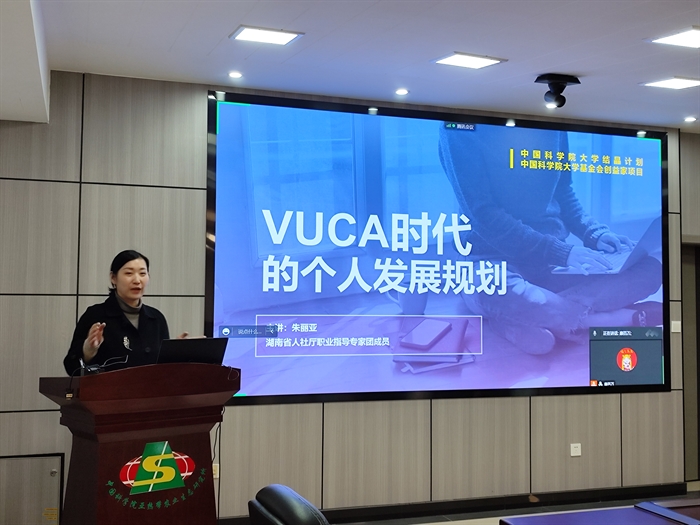 湖南省人社厅职业指导专家团成员朱丽亚老师以“VUCA时代的个人发展规划”为中心,从趋势、定位和迭代三个维度,结合其身边真实案例,特别是乡村振兴领域的实例,为大家生动讲解了个人发展的规划策略,并耐心为同学们个人规划中的困惑作了分析解答,现场气氛热烈,同学们表示受益匪浅。