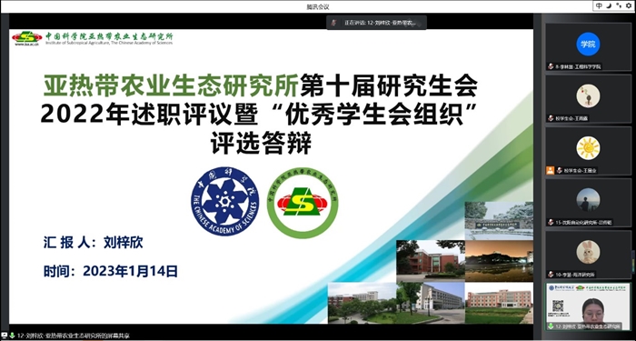 1月14日,中国科学院亚热带农业生态研究所第十届研究生会在2022年度中国科学院大学学生会委员单位述职评议暨中国科学院大学“优秀学生会组织”评选活动中高票...