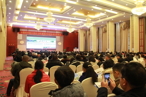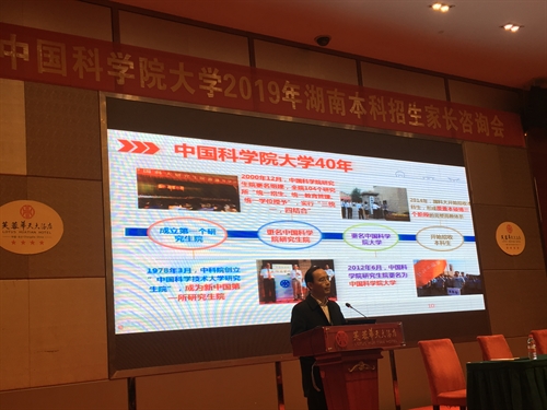 3月2日,中国科学院大学(简称“国科大”)在湖南长沙举行2019年本科招生家长咨询会。国科大湖南招生组共同组长王新洪主持咨询会,招生组部分组员参加了现场咨询。本次咨询会吸引了全省近600名家长前来参加。