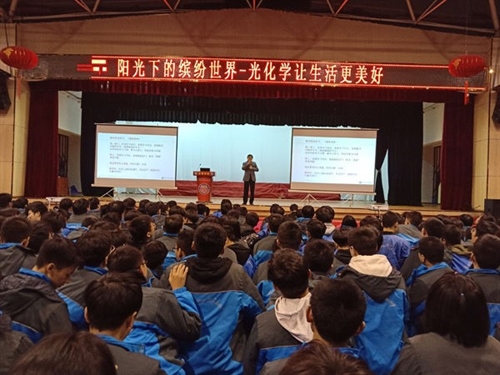 杨国强为三校两千余名高一高二师生带来题为《阳光下的缤纷世界——光化学让生活更美好》的精彩报告。报告从三个方面展开:介绍中国科学院大学历史沿革和科教融合的培养体系之办学特色;论述光化学的实质及与生活的关系,具体用身边的光与化学现象生动地介绍了光化学的概念,从光的收集、产生和利用光功能材料等方面介绍光化学研究的任务、内容、方向,还用全新的视角介绍了光化学以及光化学的应用,包括光化学荧光探针,先进光刻胶材料的制作等,展示出生活中处处与光化学相关的事实;以自己的求学体验为例,传授搞好高中阶段学习的方法。在一个半小时的报告里,杨国强展示了他广博的知识、严谨的教育情怀和幽默的语言风格,博得了一阵又一阵掌声。