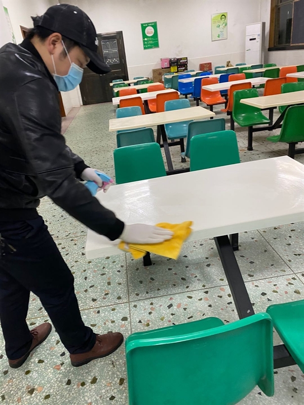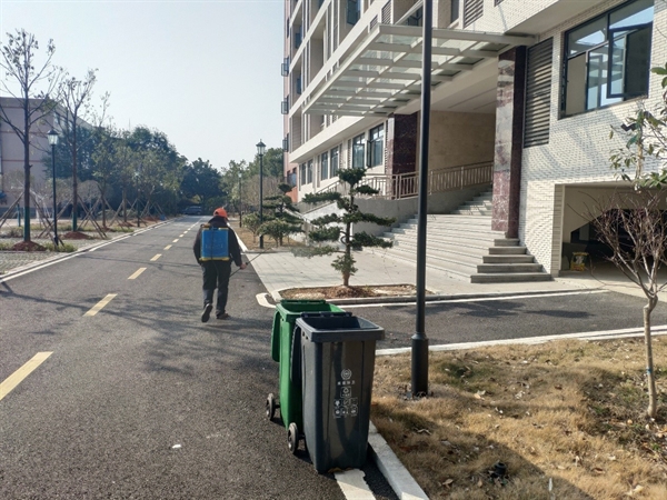 严格园区封闭式管理,禁止一切外来人员及车辆进入园区,园区内人员出入需进行登记并测量体温,未带口罩不得进入园区。为做好园区消毒工作,采购了84消毒液、医用酒精等消毒品,每日对园区内办公楼、实验楼、食堂、住宅楼道等公共区域和重点部位进行全面消杀,不留任何死角。研究所想尽一切办法统一购买了近万只医用口罩。2月10日,研究所复工第一天,为每位返岗职工发放了一次性口罩。