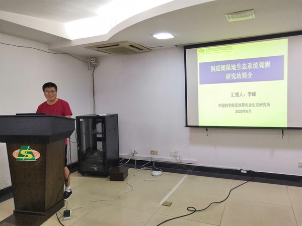 洞庭湖站站长谢永宏研究员主持此次会议。首先,李峰研究员、钱湛副主任分别代表双方详细汇报了各单位的基本情况及在洞庭湖水资源、水生态等方面的研究工作。随后,双方就洞庭湖流域当前面临的突出问题,进行了深入交流。同时讨论了双方在洞庭湖流域水资源管理、水生态修复及湿地生态修复等方面的战略合作前景、框架和重点工作。通过此次研讨,双方初步达成了未来五年洞庭湖流域水资源、水生态研究的战略合作框架,并期望合作研究成果可为十四五期间洞庭湖流域湿地保护与流域综合治理提供政府决策依据。会后,与会专家在李峰研究员带领下参观了中国科学院亚热带农业生态过程重点实验室。