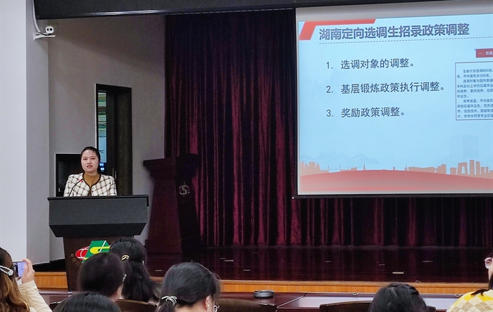 2019届毕业生邹巧云(湖南省2019届定向选调生,现任职于雨花区同升街道基层党建办)分享了关于定向选调生招录政策以及备考策略,并介绍了基层工作经历,告诉有意向报考选调生的同学,就要做好一切从零开始的打算,丢掉学历光环,做好为人民服务的“孺子牛”。