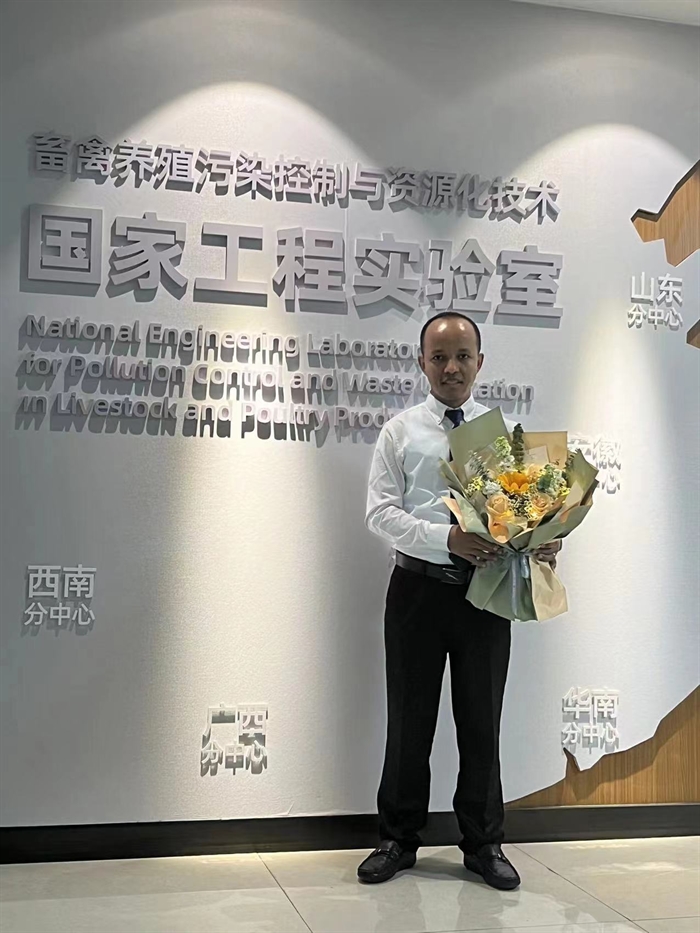 强大为埃塞俄比亚籍国际学生,2018年获得TWAS-CAS奖学金,是谭支良研究员和贺志雄研究员共同培养的博士研究生。强大在学期间勤奋努力,专心致研,努力克服疫情带来的焦虑和思乡之苦。其博士期间主要致力于绵羊低蛋白日粮以及低蛋白日粮下添加限制性氨基酸对羔羊生长、脂质代谢和肠道健康的影响,以第一作者身份在Journal of Animal Science and Biotechnology、Frontiers in Nutrition、Applied Microbiology and Biotechnology等期刊发表SCI文章4篇,其研究成果为低蛋白日粮技术在绵羊中生产应用提供了理论指导。