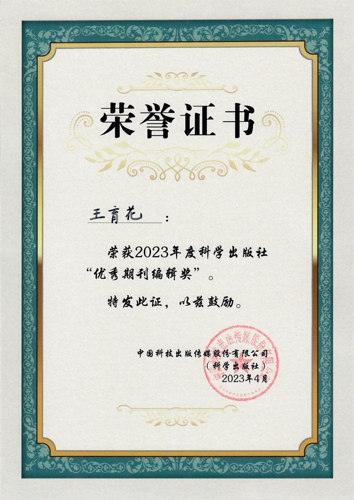 4月25日至27日,2023年度科学出版社期刊出版年会在绍兴举行,《农业现代化研究》编审王育花获得“2023年度科学出版社期刊优秀编辑奖”。