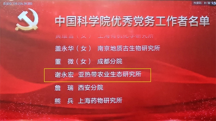 为进一步激励广大党员、党务工作者和基层党组织不忘初心、牢记使命,创新实干、奋勇争先,中国科学院在全院开展优秀共产党员、优秀党务工作者和先进基层党组织评选表彰工作。此次全院共评选出优秀共产党员100名、优秀党务工作者49名、先进基层党组织49个。中国科学院亚热带农业生态研究所谢永宏研究员荣获“中国科学院优秀党务工作者”称号,岳跃民研究员荣获“中国科学院优秀共产党员”称号。