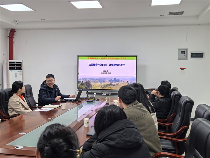 环江喀斯特生态系统观测站副站长聂云鹏研究员首先作了题为《给国际合作以时间,让化学反应发生》的交流报告,他结合自身科研成长与国际合作经历,全面分享了国家自然科学基金和国际合作项目的申报要点及成功经验。