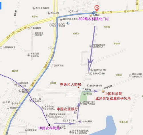 乘坐高铁抵达长沙者:从长沙南站(高铁站)东广场乘坐X117路、星沙111路/X111路到农科院下车;